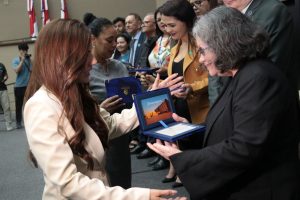 Socorro Butel, ao receber a honraria pelo SENAI, reforçou o impacto social da aprendizagem profissional: “O SENAI qualifica jovens para o mercado, transforma vidas e desenvolve competências e habilidades socioemocionais para formar profissionais completos e cidadãos conscientes”.